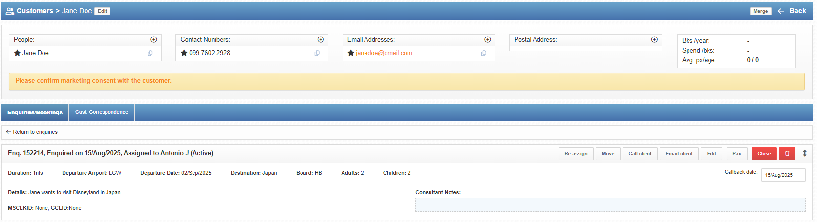 This article provides step-by-step instructions on how to create a new enquiry or booking within the DASH, from accessing the Enquiries page to entering customer details and confirming the entry.