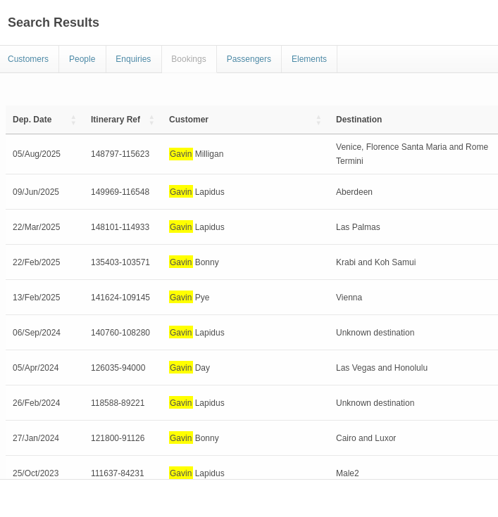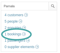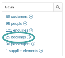 If your search returns only one match (for example, a single booking reference or a unique customer name), clicking it will take you directly to that record.